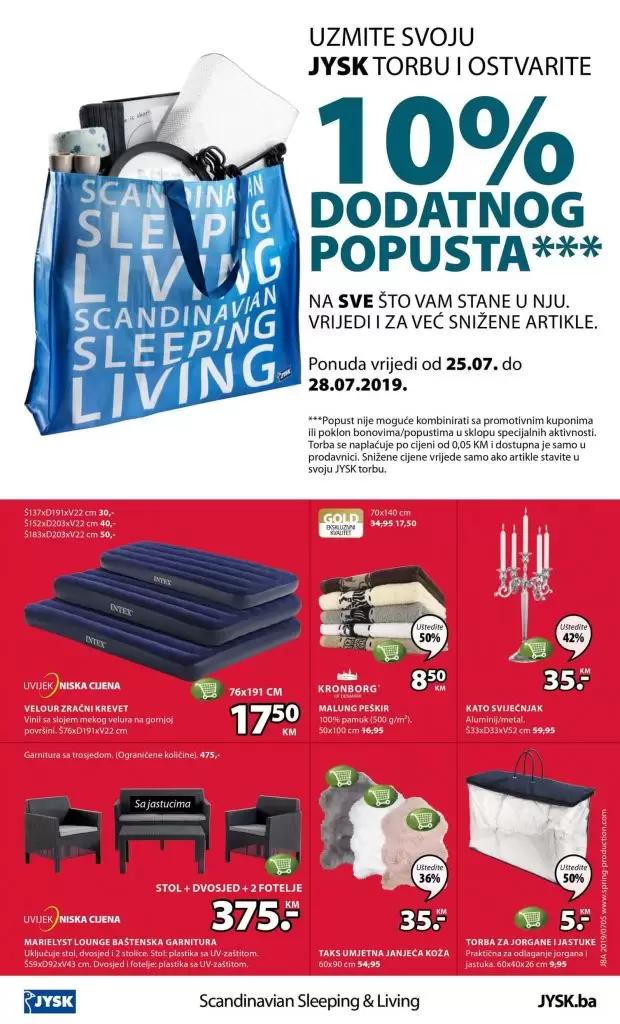 Jysk, 25.07.-07.08.2019. godine 25/07/2019 In Jysk, Završena sniženja baštenski namještaj dekoracija jastuk jorgan jysk kancelarisjki namještaj kauč korpa za veš. zavjesa Kućni tekstil kuhinja madrac Namještaj ogledalo ormar peškir polica posteljina rasvjeta regal stol stolica sušilo za veš sve za kupatilo trpezarija ← Previous post Next post → Leave a Reply Cancel replyYou must be logged in to post a comment.