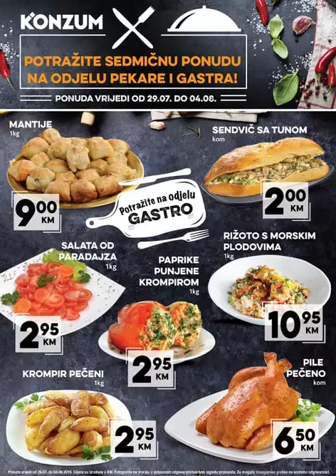 Konzum, akcija na gastro odjelu, 29.07.-04.08.2019. godine 30/07/2019 In Konzum, Završena sniženja gastro gotova jela peciva ← Previous post Next post → Leave a Reply Cancel replyYou must be logged in to post a comment.