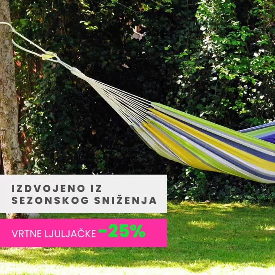 U toku sezonskog sniženja, koji se odnosi na sve rekvizite za odmaranje u vrtu do fantastičnih 30% , za vas izdvajamo ljuljačke snižene 25%.