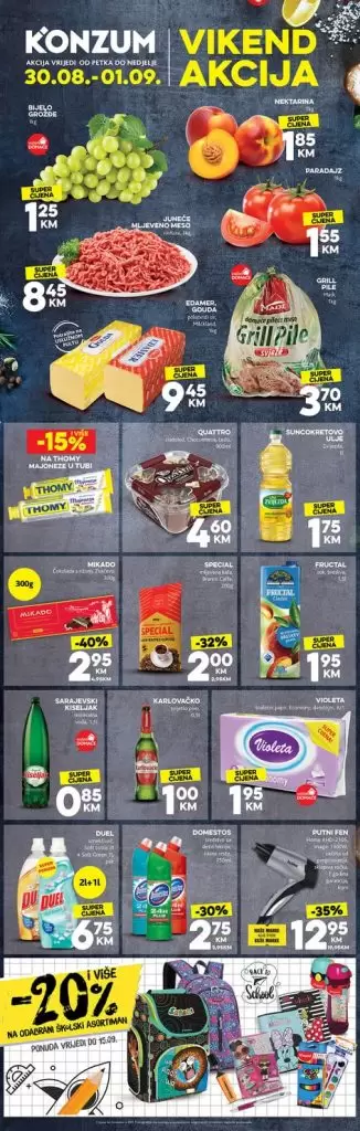 Konzum, vikend akcija 30.08.-01.09.2019. godine 30/08/2019 In Konzum, Završena sniženja kućna hemija i oprema Prehrana škola Tehnika ← Previous post Next post → Leave a Reply Cancel replyYou must be logged in to post a comment.