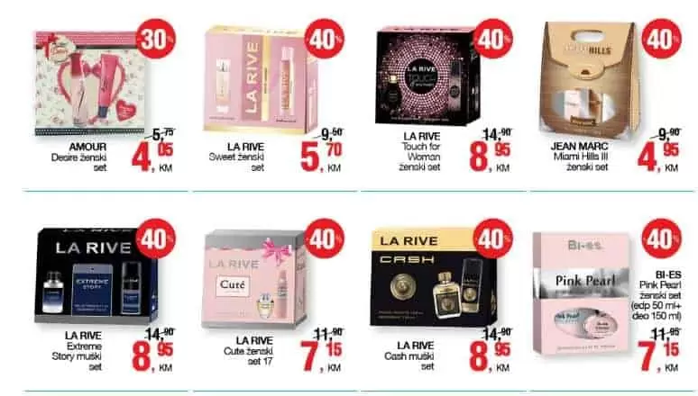 Male stvari i mali trenutci nisu mali. Jedan trenutak pretvori u vječan malim poklonom koji će izmamiti veliki osmijeh! SVI PARFEMI i POKLON SETOVI sniženi od -10% do -50% Ponuda vrijedi od 5.-12.8. ili do isteka zaliha! Izdvajamo za vas dio ponude, a ostatak pogledajte u najbližoj cm poslovnici!