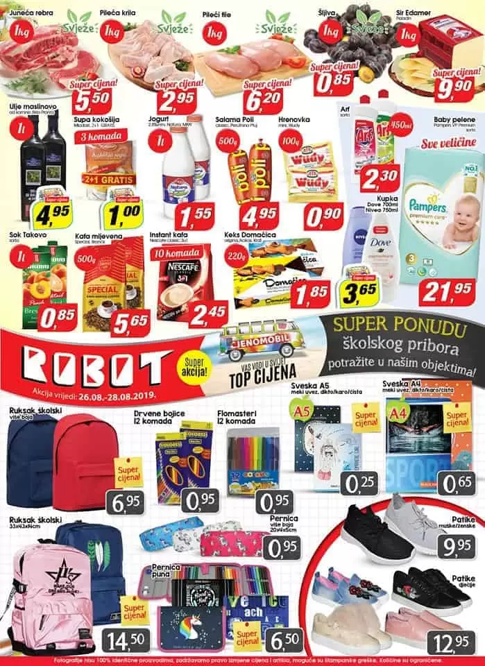 Robot, akcija za početak sedmice 26.08.-28.08.2019. godine 25/08/2019 In Robot, Završena sniženja bebe kozmetika i higijena kućna hemija i oprema Prehrana sve za školu ← Previous post Next post → Leave a Reply Cancel replyYou must be logged in to post a comment.