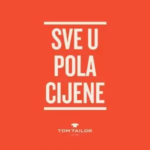 Vaša omiljena robna marka Tom Tailor je uz Vas sa posebnom ponudom: svi artikli iz aktualne kolekcije proljeće – ljeto 2019. su sada na raspolaganju u pola cijene!