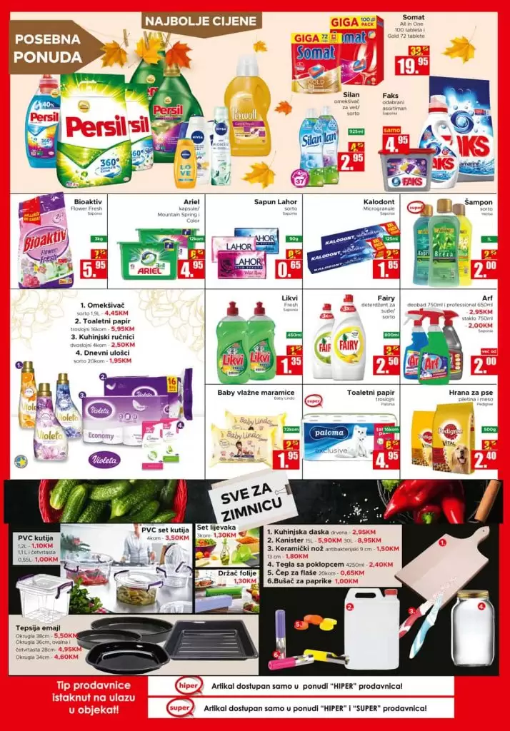 • kozmetika i higijena kućna hemija i oprema kuhinjski pribor i posuđe Prehrana zimnica