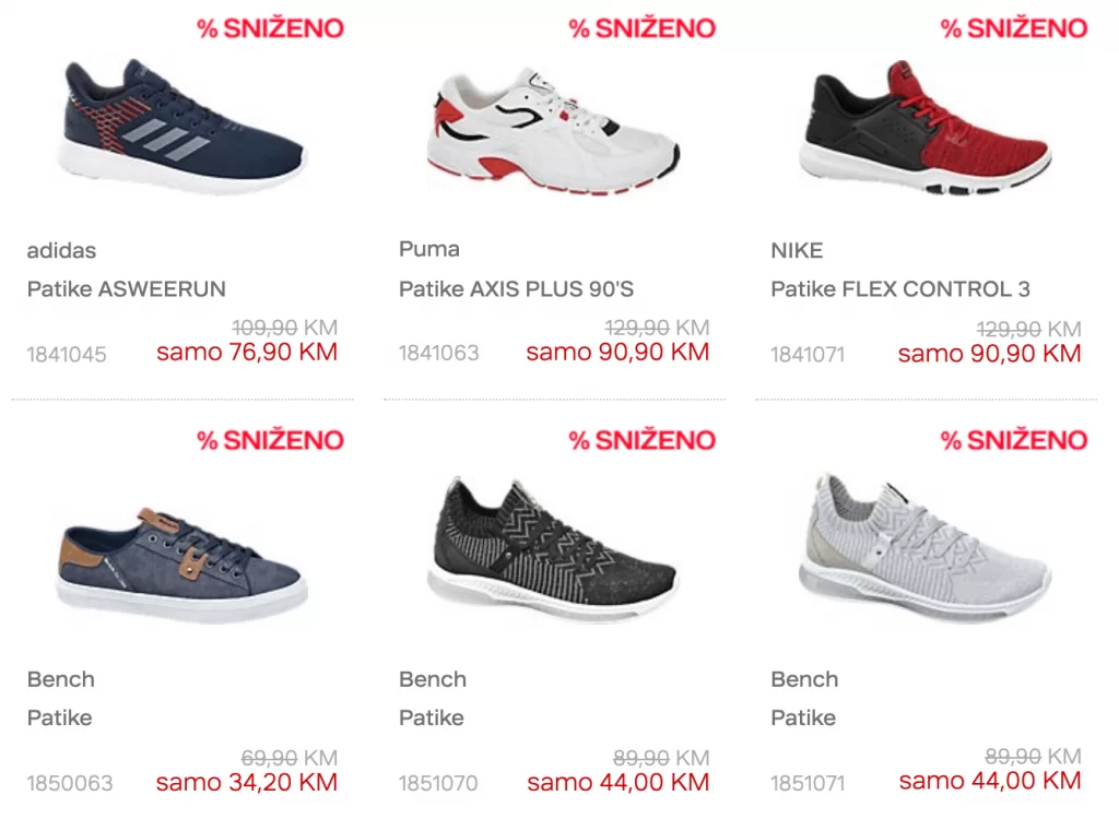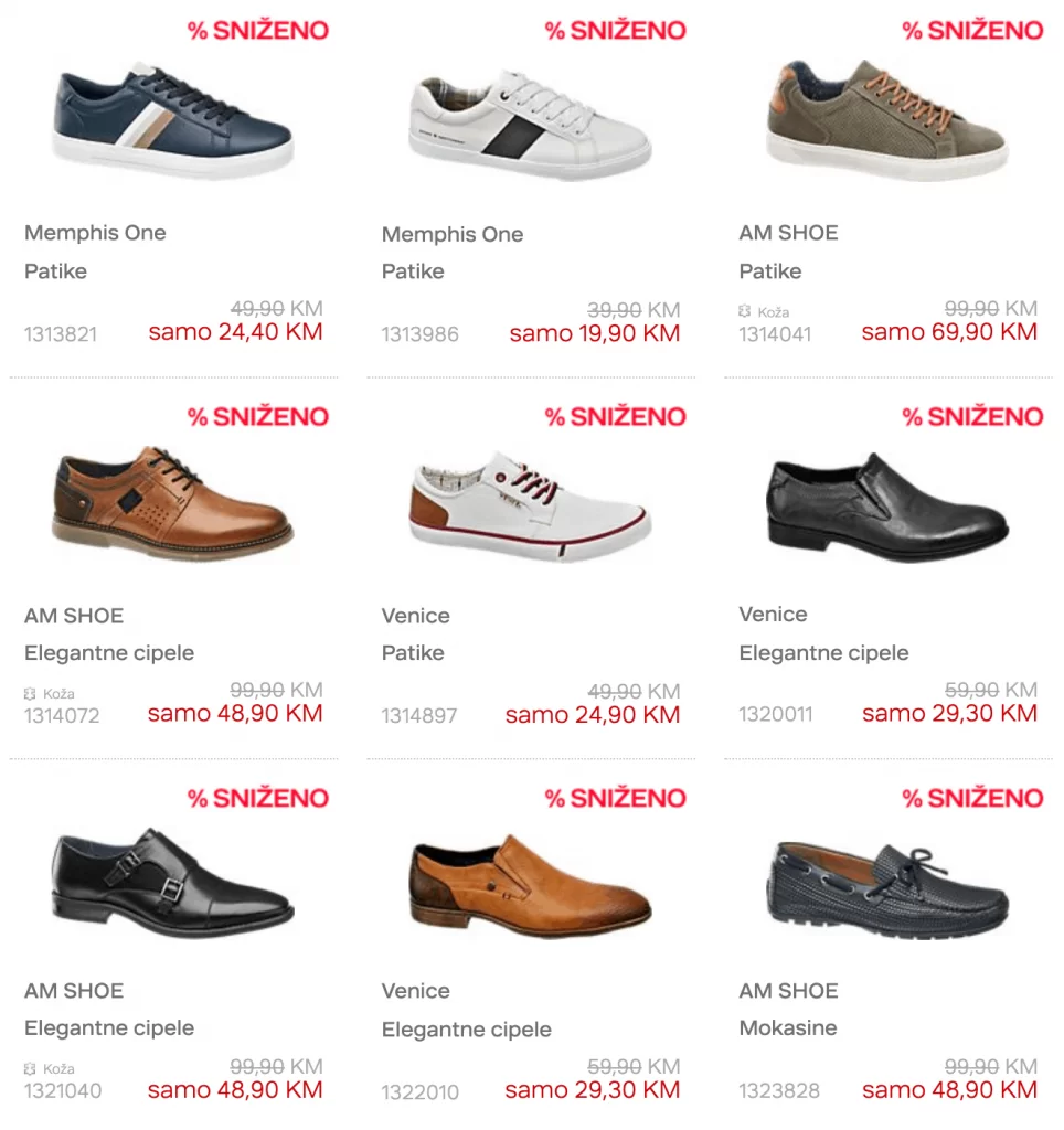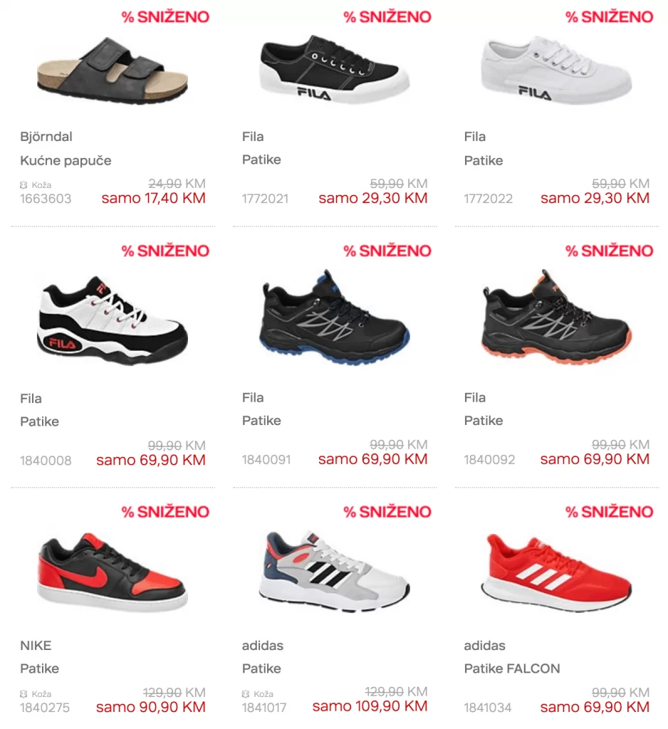 Deichmann, sniženje muške obuće! 29.9.2019. godine Ne želite propustiti super akcije? Priključite se našoj viber zajednici! ⇓ 29/09/2019 In Aktuelna sniženja, deichmann adidas am shoe bench björndal claudio conti elegantne cipele fila gojzerice kućne papuče memphis one mokasinke muška obuća nike obuća patike puma sandale tene venice ← Previous post Next post → Leave a Reply Cancel replyYou must be logged in to post a comment.