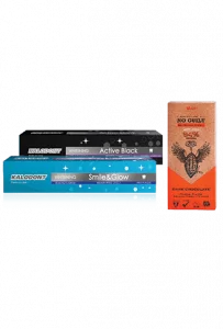 Kupovinom dvije KALODONT Whitening Active Black ili Smile & Glow paste za zube od 75 ml, na kasi preuzmite čokoladu bez šećera na poklon.