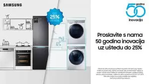 Ostvarite do 25% popusta na sve Samsung modele mašina za veš, frižidera, te ugradbenih kuhinjskih uređaja (frižidera, pećnica, ploča za kuhanje i mašina za suđe) do 10.11.2019. godine.