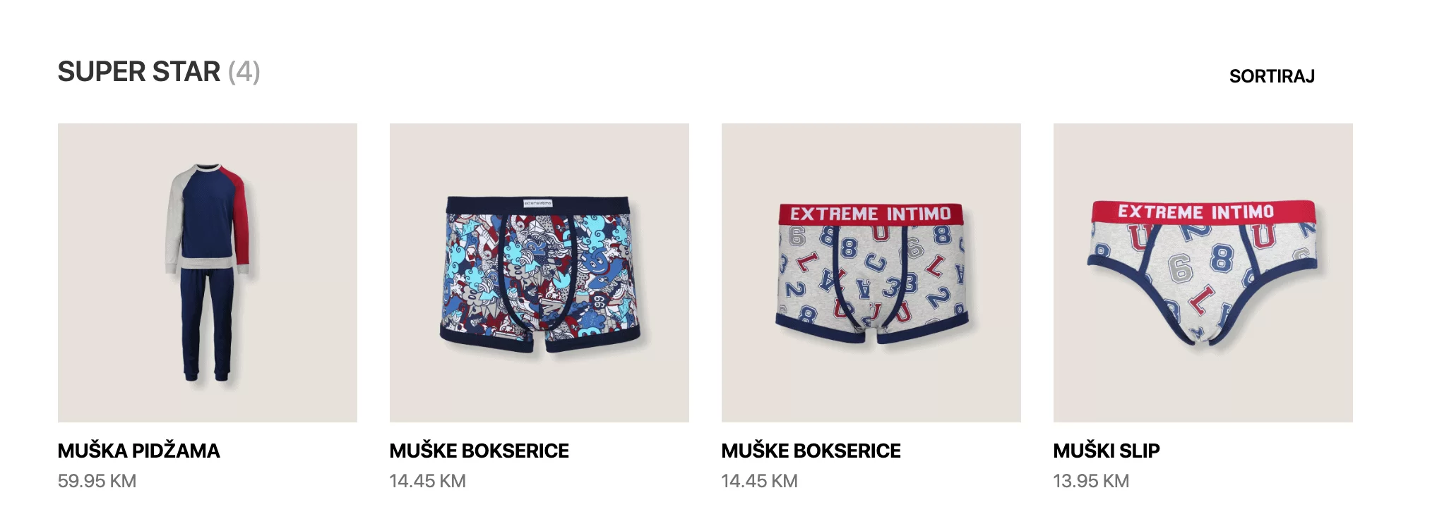 Moderna kolekcija dizajnirana za muškarce. Extreme Intimo Super Star vas očekuje online na našem sajtu i u svim radnjama.