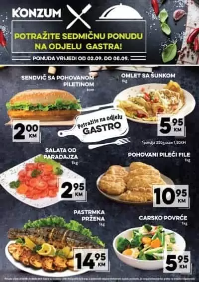 Konzum, gastro odjel 02.09.-08.09.2019. godine 05/09/2019In Konzum, Završena sniženjaPrehrana← Previous post Next post → Leave a Reply Cancel replyYou must be logged in to post a comment.