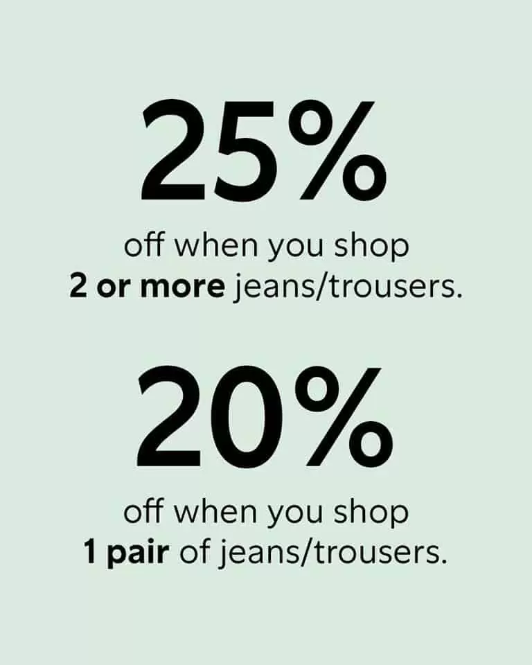 Vrijeme je za nove hlače. Sada nudimo 20% popusta prilikom kupovine jednog jeansa/hlača i 25% popusta kupovinom 2 ili više jeansa/hlača. Još bolje – možete kombinovati artikle iz ženske i dječije ponude. Slatka ponuda, zar ne?