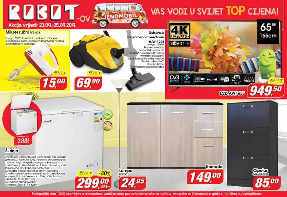 Robot, akcija za početak sedmice, 23.09.-25.09.2019. godine 23/09/2019In Robot, Završena sniženjakozmetika i higijena kućna hemija i oprema Namještaj Prehrana Tehnika← Previous post Next post → Leave a Reply Cancel replyYou must be logged in to post a comment.