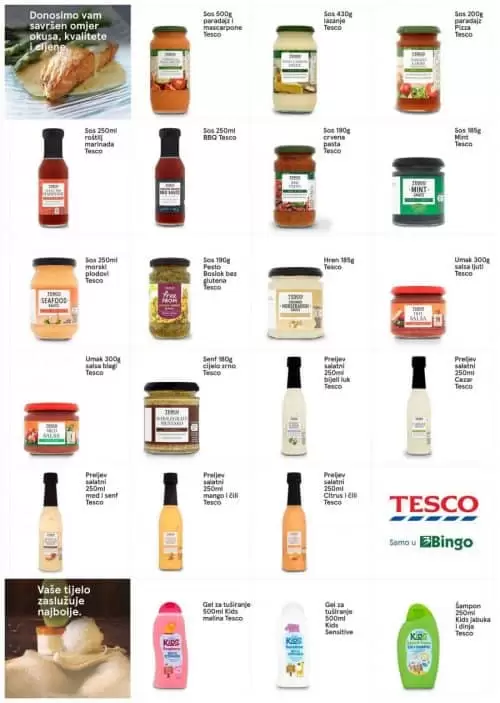 Omjer cijene i kvaliteta je danas imperativ u kupovini. Širok asortiman kvalitetnih a povoljnih proizvoda je jedna od Bingovih odrednica. Stoga se mi trudimo da našim kupcima ponudimo upravo to. Novi proizvodi brenda Tesco UK od nedavno su na našim policama. Tesco je najveći engleski maloprodajni lanac sa preko 440.000 zaposlenih u 6.800 trgovina u Engleskoj, još nekoliko zemalja u Evropi i Aziji. Proizvodi koje plasira u svojim trgovinama širom svijeta su visokog kvaliteta i povoljne cijene. Povoljna, zdrava, održiva hrana dostupna svima, slogan je kojeg se u Tescu drže godinama. Više o načinu plasiranja, kao i kvaliteti proizvoda možete pronaći OVDJE.