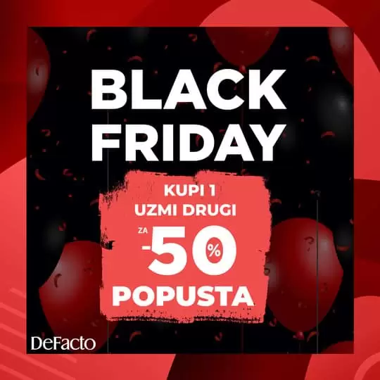 Vaš omiljeni DeFacto pripremio je sjajne blackfriday pogodnosti! Kupi 1, drugi uzmi za 50% popusta!