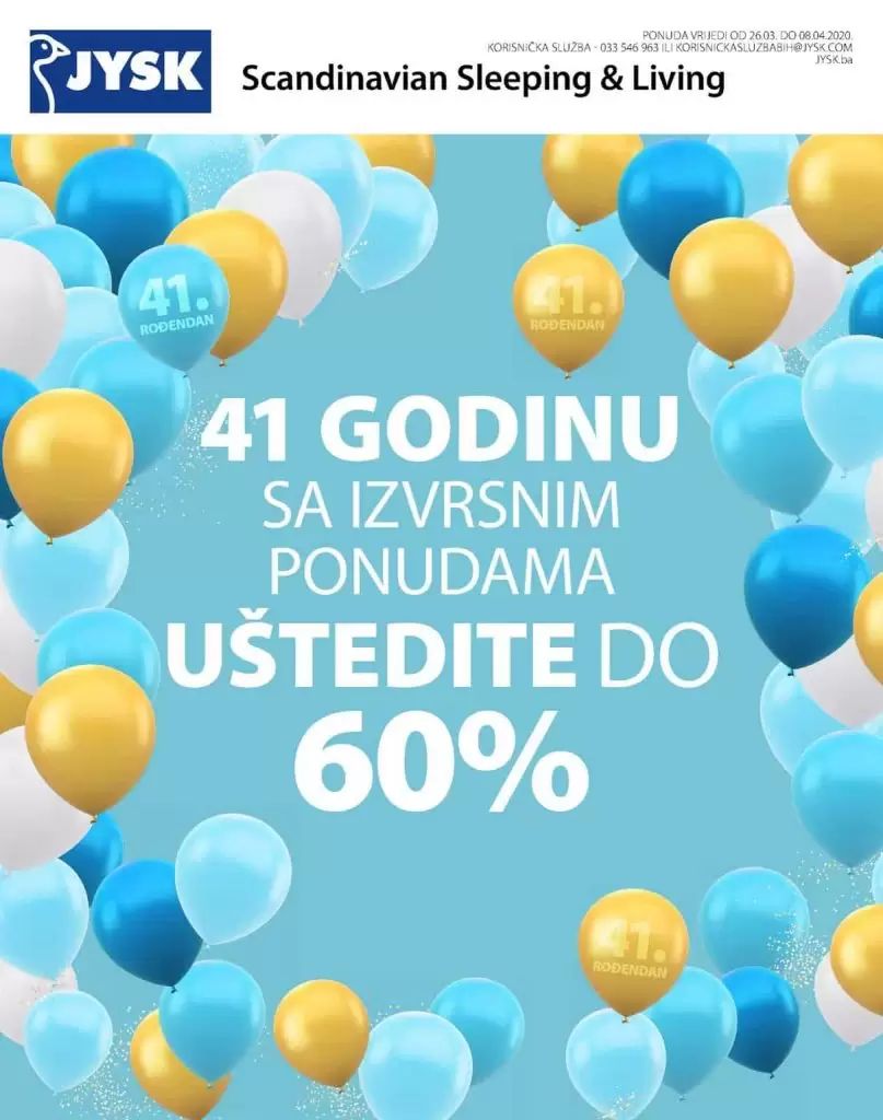 41 godinu sa izvrsnim ponudama, uštedite do 60%! Jysk akcijski katalog 26.3-8.4.2020. godine!