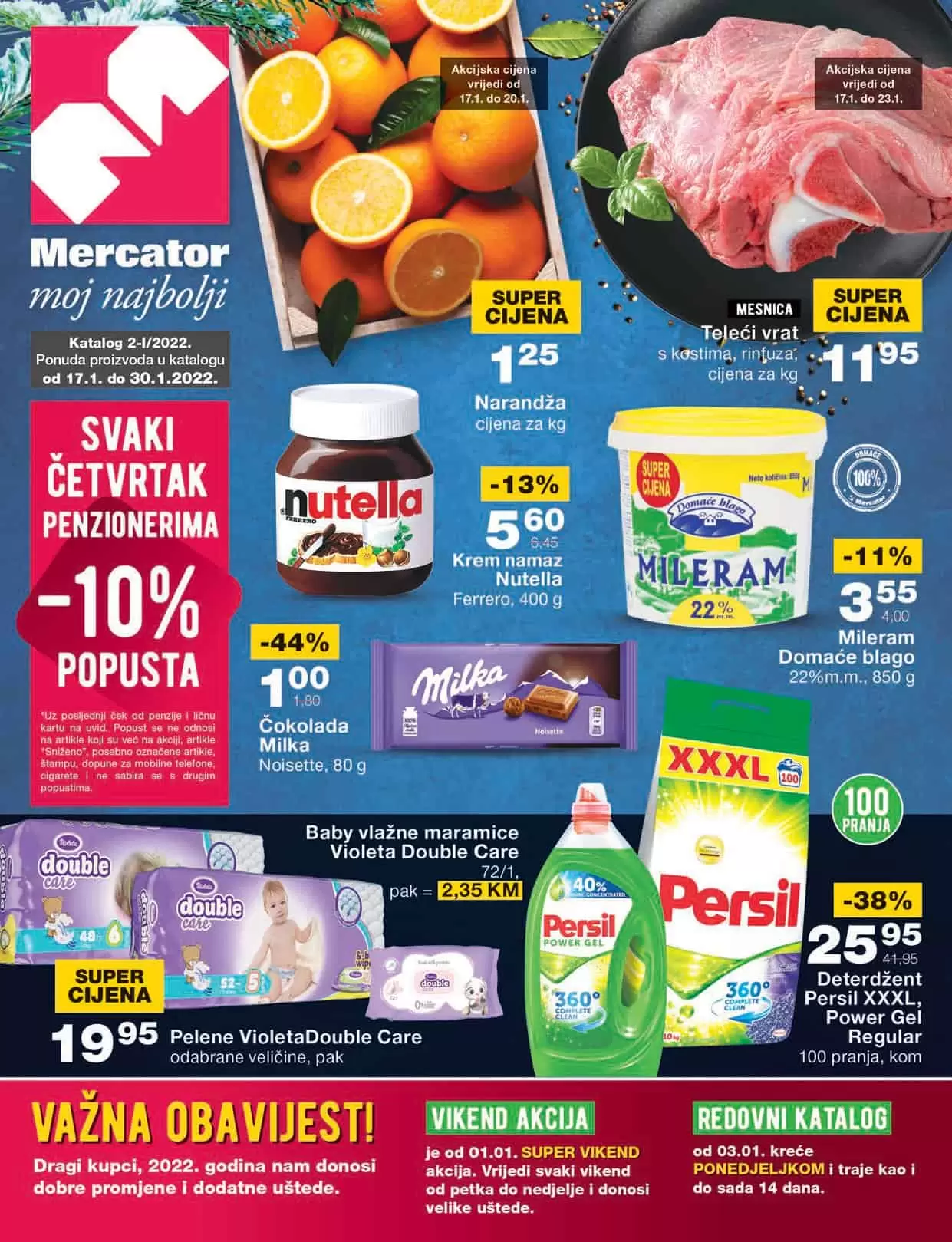 Svjedoci smo kako svaki dan cijene divljaju sve više i više. Nažalost na to ne možemo utjecati. Ono što možemo je da pratimo sniženje iz različitih trgovačkih centara i na taj način da uštedimo svoj novac. Raspon cijena je zaista velik, isplati se pratiti akcije ponude! Pogledajte kakvu ponudu za nas je pripremio Mercator! Mercator kataloška akcija 17-30.01.2022. godine!