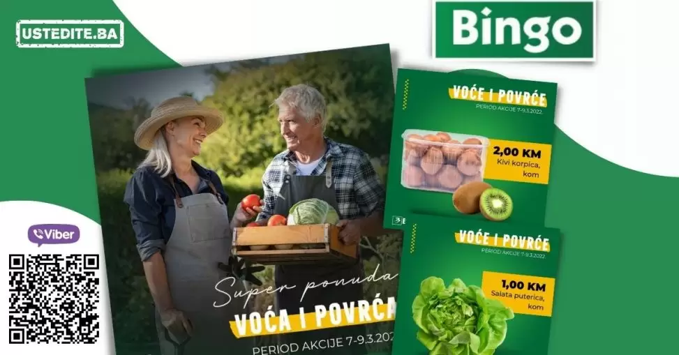 U periodu od 07-09.03. u Bingo trgovinama potražite kivi po cijeni od 2,00 KM i salatu putericu po fantastičnoj cijeni od 1,00 KM. Bingo Kralj dobrih cijena!