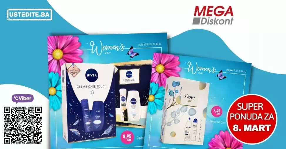 Pokloni koji će oduševiti svaku ženu! Odaberite Nivea, Dove poklon set za njegu tijela i/ili možda bombonjeru. U svakom slučaju dobre cijene vas očekuju! Mega Diskont super ponuda za 8.mart 01-08.03.2022. godine!