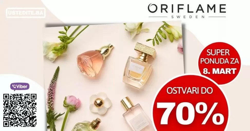 Posebna jednodnevna ponuda obuhvata sve parfeme, parfemske vode i toaletne vode, a od mirisa koji su već na kataloškom sniženju ili na posebnoj online ponudi, neke smo i dodatno snizili! Oriflame SAMO 8. MARTA ostvarite do 70% popusta na odabrane parfeme!