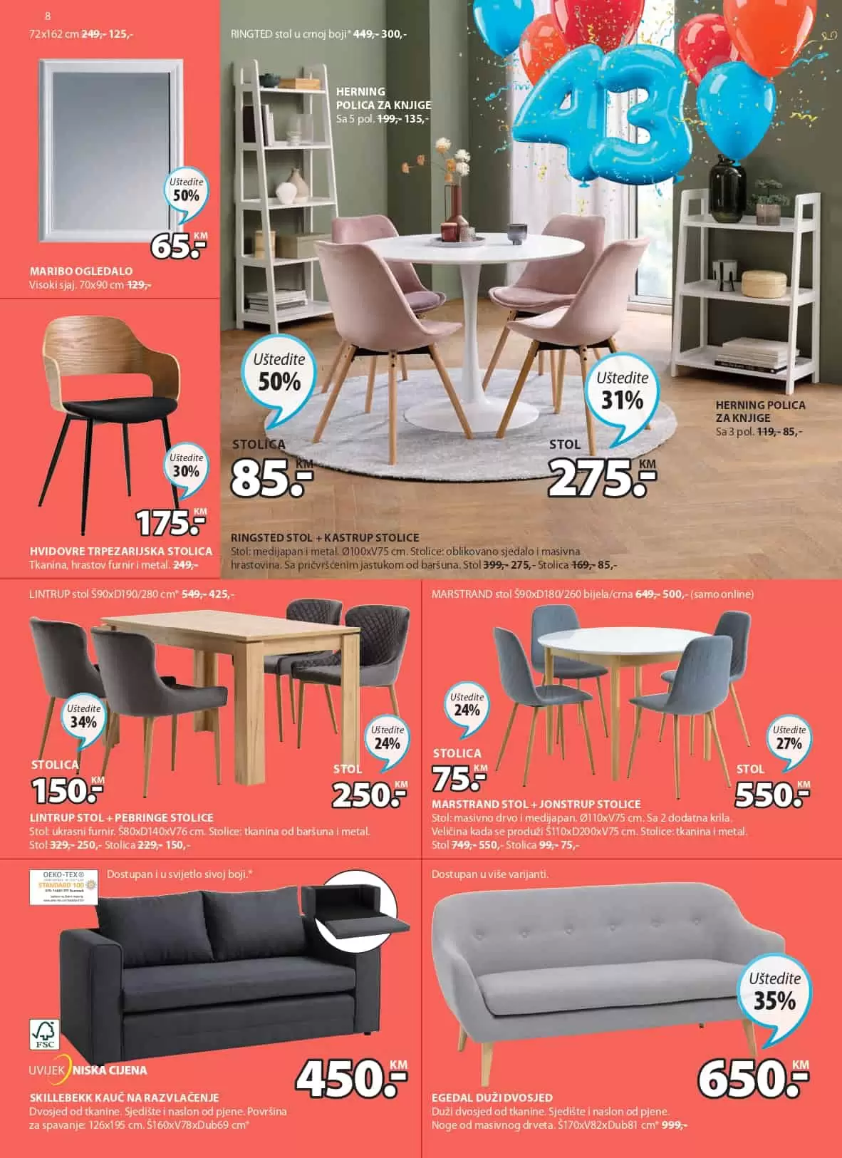 Na sniženju možete pronaći veliki izbor JYSK namještaja vrhunskog kavliteta i modernog dizajna. Oduševit će vas ponuda kućnog tekstila i dekorativnih predmeta.