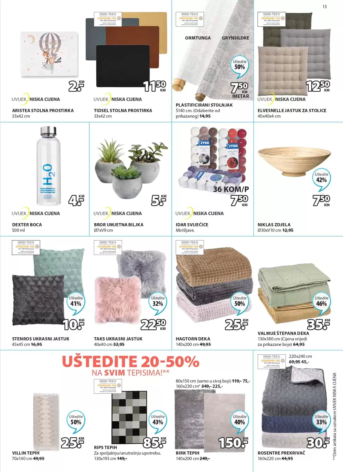 Veliki izbor stolnih prostirki, jastuka za stolice, ukrasnih jastuka, deka pronaći ćete u Jysk trgovinama po sniženim cijenama.