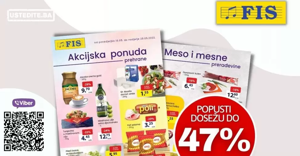 Ostvari značajne uštede kupujući na odjelima prehrane i hemije u Fis prodavnicama! Iskoristi popuste koji dosežu i do 47%!