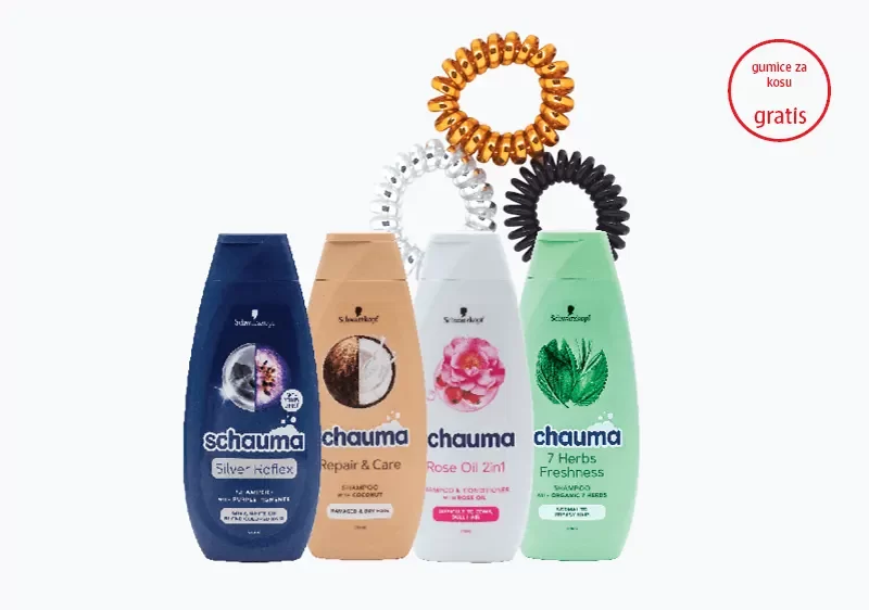 Kupovinom bilo kojeg schauma šampona za kosu od 400 ml, na kasi preuzmite gumice za kosu na poklon.