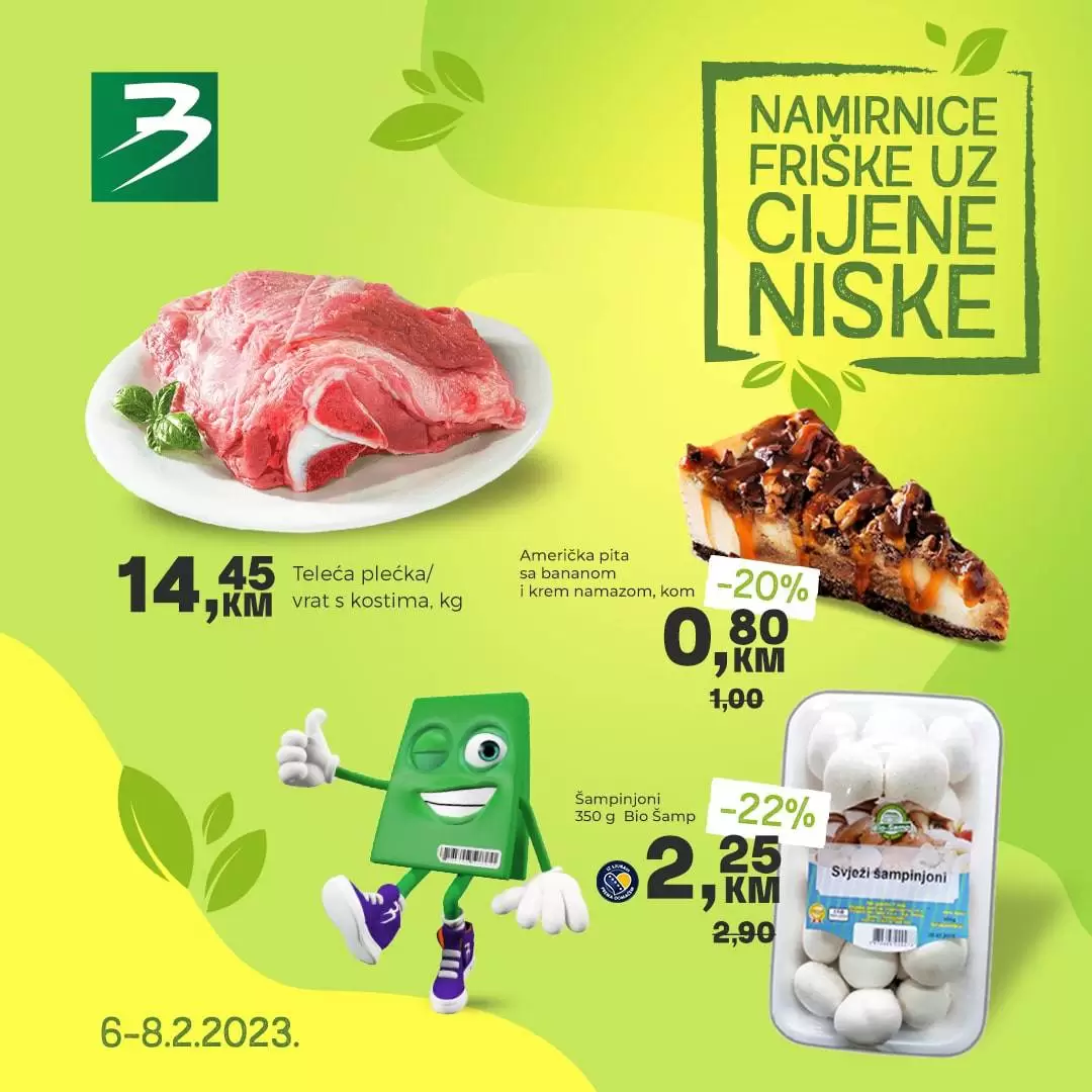 Namirnice friške uz cijene niske vas čekaju u Bingo trgovinama u periodu od 6. do 8. februara. Posjetite Bingo trgovine i uživajte u kupovini po sniženim cijenama.