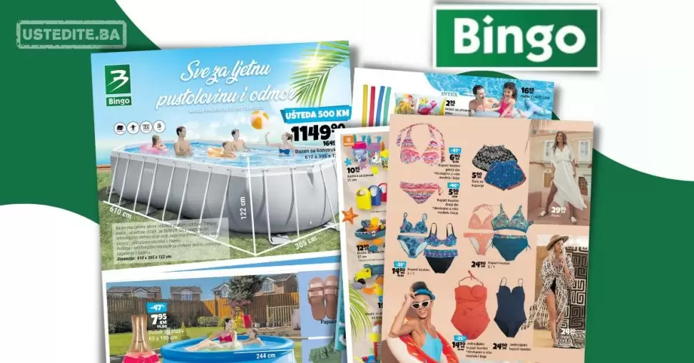Novi Bingo katalog SVE ZA LJETNE PUSTOLOVINE I ODMOR donosi nam SJAJNU PONUDU! Kupaći kostimi za cijelu porodicu, papuče za vodu, bazeni, vrtni namještaj i još mnogo toga! … Continue reading Bingo katalog SVE ZA LJETO 5.7-13.8.2023.