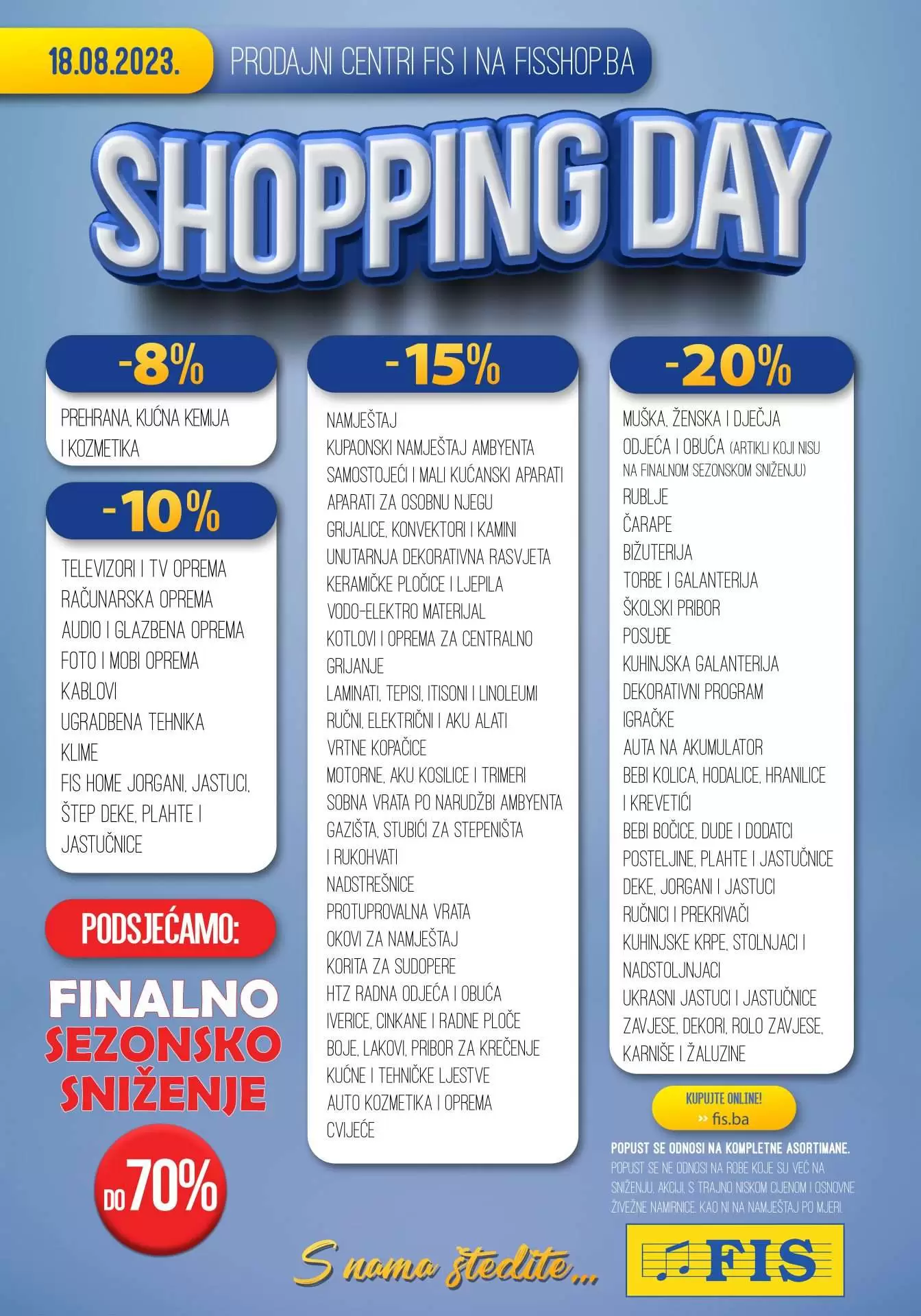 Petak, 18. august Shopping day u svim prodajnim centrima FIS u Bosni i Hercegovini, kao i na Fis web shopu.