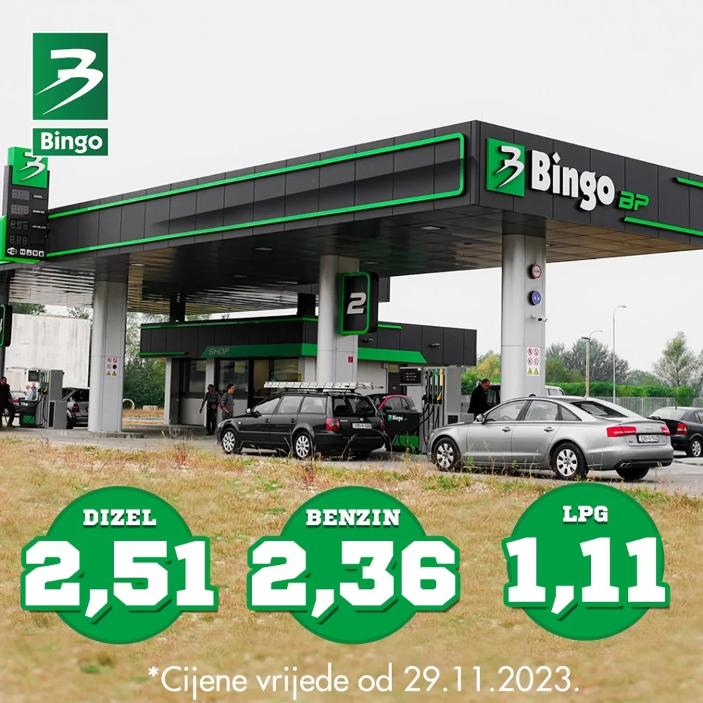 Od 29.11. cijene dizel i benzin goriva na Bingo Petrol benzinskoj pumpi iznose: