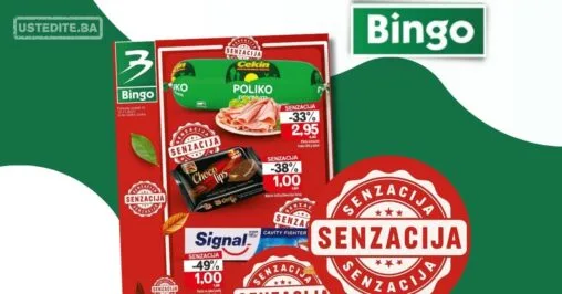 Bingo SENZACIONALNA SNIŽENJA koja ne smijete propustiti!Iz Bingo redovnog kataloga izdvojili smo najbolje ponude po nevjerovatnim cijenama – sve za užitak i uštedu!Poliko kobasica, Choco lips biskvit i…