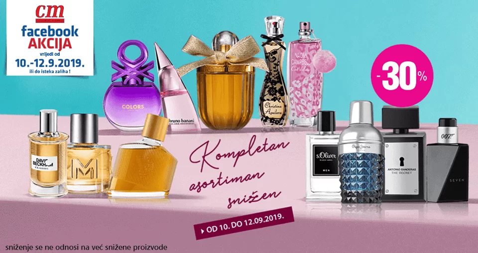 Pamtite ovo kasno ljeto po lijepim mirisima. Birajte neke od prikazanih poznatih brendova koji su za vas sniženi -30% u svim cm poslovnicama u periodu od 10.-12.9. ove…