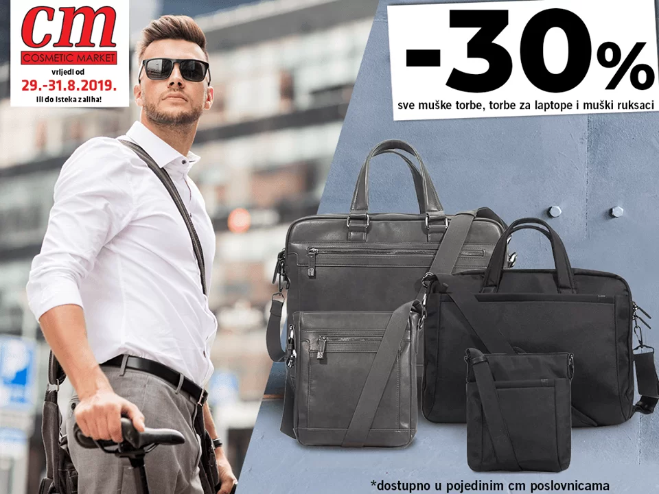 Budite muškarac koji je modno osviješten. Potražite nešto za sebe,a sniženje od -30% se odnosi na sve muške torbe, torbe za laptope i ruksake od 29.-31.08.2019. Vidimo se…