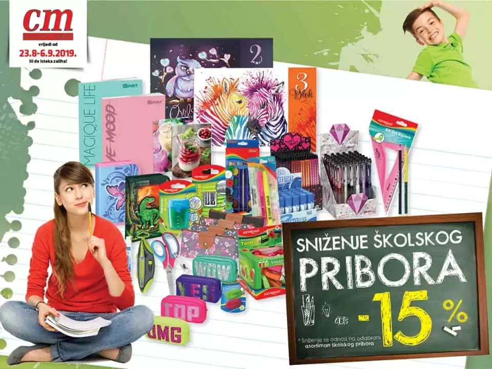 Vrijeme je za školu! Znate li da je u životu najljepše đačko doba ? Stoga, pripremite se za svoje najljepše razdoblje,te u najbližem cm-u potražite sniženje od -15%…