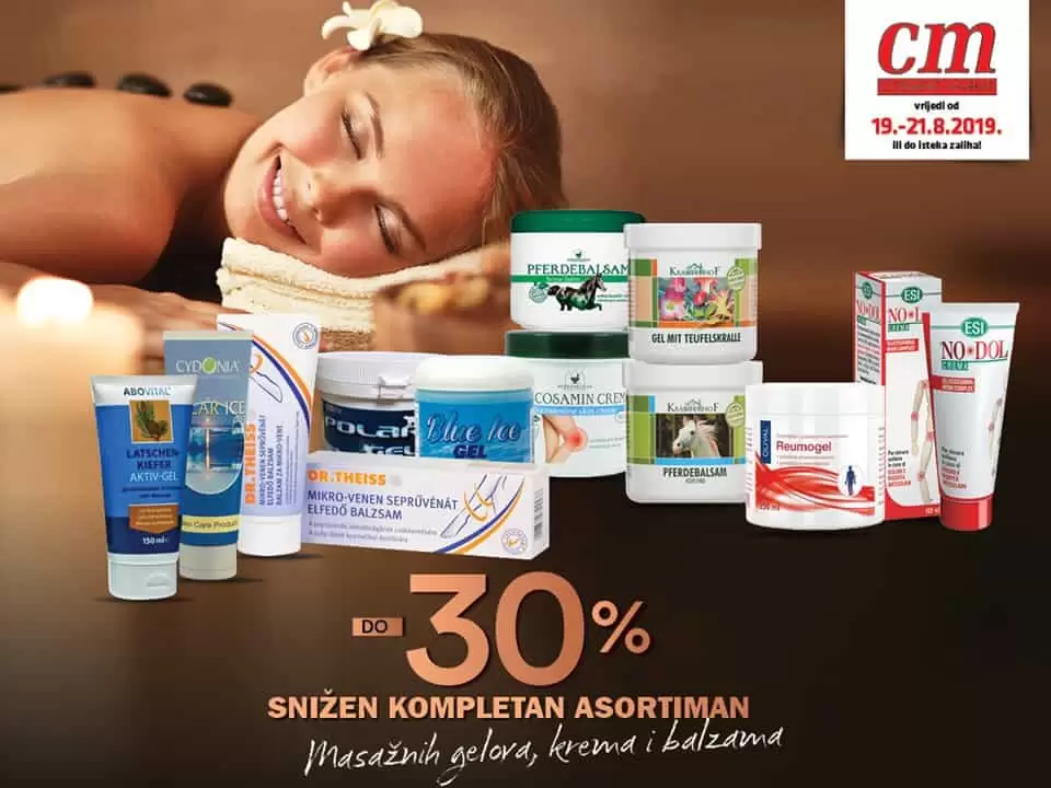 Za svakodnevne male tegobe, sigurno ste rješenje tražili u gelovima i masažnim kremama. Njihovi prirodni sastojci pomoći će da vaš bol nestane. U cm-u vas od 19.-21.8. čeka…