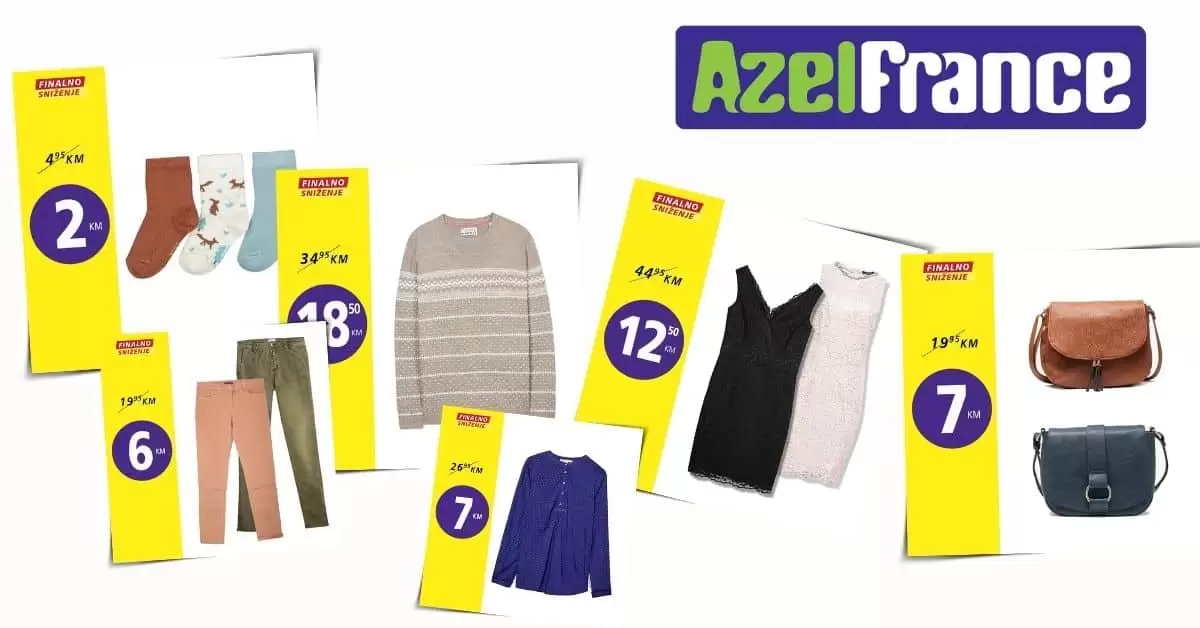 Odlična ponuda za Tebe! Sniženje traje i dalje! Brzo u Azel France Čarapice samo 2 KM! Džemper već od 18,50 KM! Haljinice 12,50 KM! Pantalone samo 6 KM! …