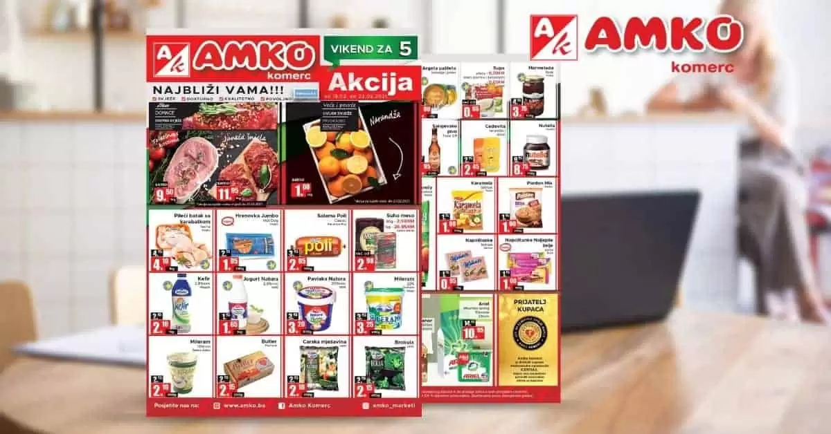 Ponuda za 5! Amko vikend akcija 18-22.02.2021. godine! Znate li da je Amko Komerc dobitnik je prestižne medalje “Jer mi cijenimo svoje kupce” koju dodjeljuje međunarodna organizacija ICERTIAS….