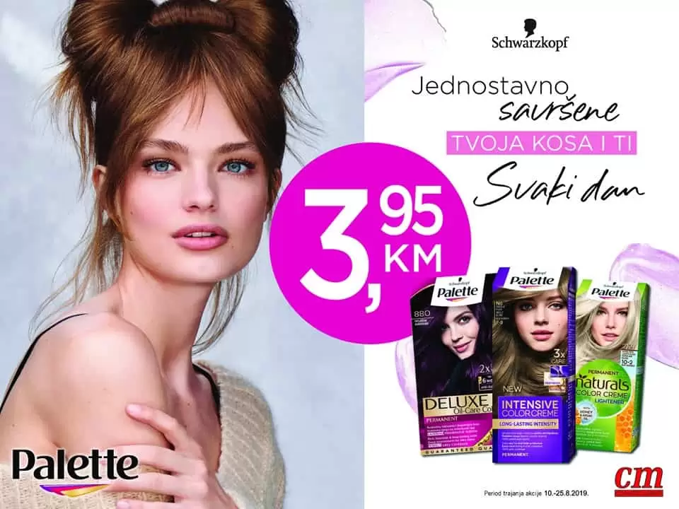 Palette – boje za kosu prirodnog izgleda. Mješavina pigmenata daje kosi dodatni sjaj postižući efekat boja prirodnog izgleda. Sadrži masku za bogatu njegu sa keratin kompleksom. Kosa je…