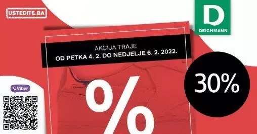 Ostvarite 30% popusta na odabrane artikle koji su već sniženi! Deichmann vikend akcija 04-06.02.2022. godine! Popusti se međusobno ne zbrajaju. Ponudu pogledajte > OVDJE! STOP! Proizvodi sa SUPER…
