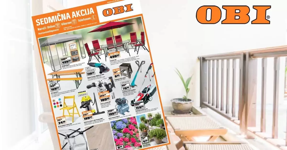 Super cijene! OBI sedmična akcija 25-31.5.2020. godine! Izdvojeno iz ponude: Drvena sklopiva stolica Libre 24,90 KM Vrtna garnitura iz tri dijela samo 169,90 KM Preklopiva PVC stolica 6,95…