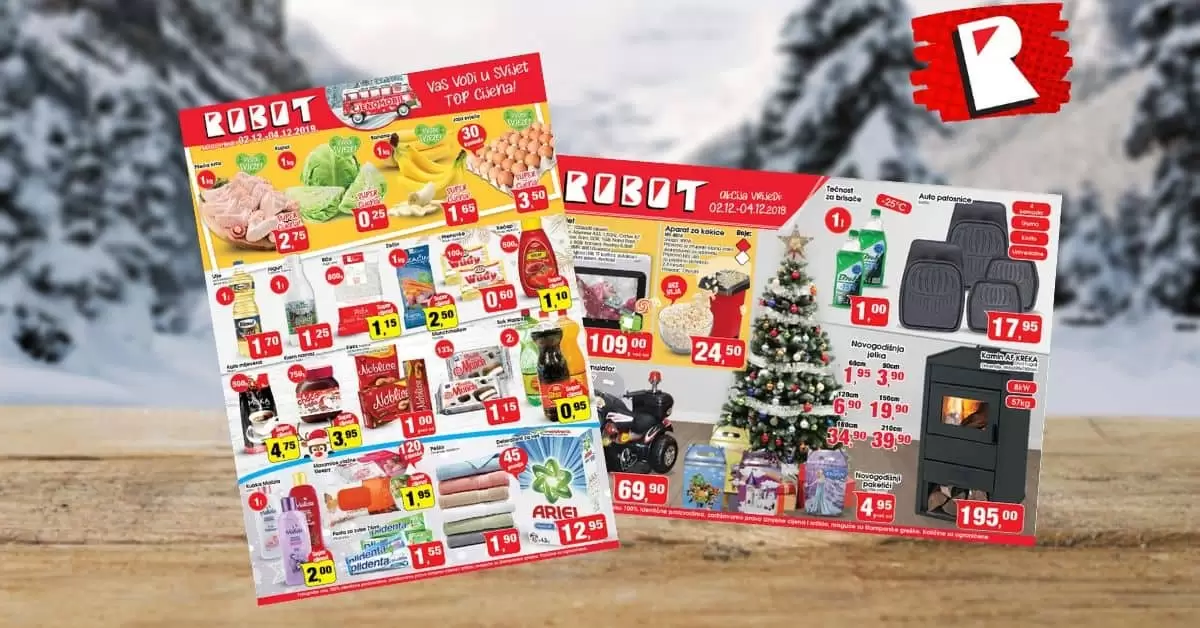 Robot vas vodi u svijet TOP cijena! Robot vikend akcija 3.-5.1.2020. godine. Krompir samo 0,45 KM. Mljevena kafa 500 gr samo 4,95 KM. Tečni deterdžent za veš 3,3l…