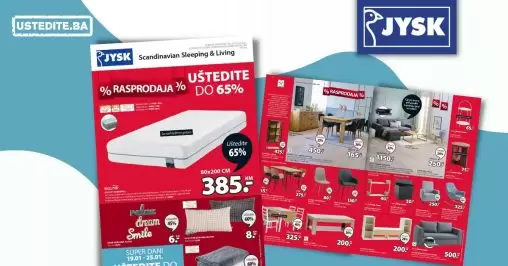 U svim JYSK prodajanim centrima očekuje vas RASPRODAJA! Uštedite do 65% na odabrani asortiman. Jysk katalog SNIŽENJE NAMJEŠTAJA Jysk DANI SKANDINAVSKOG NAMJEŠTAJA DANI SKANDINAVSKOG NAMJEŠTAJA u Jysk prodavnicama…