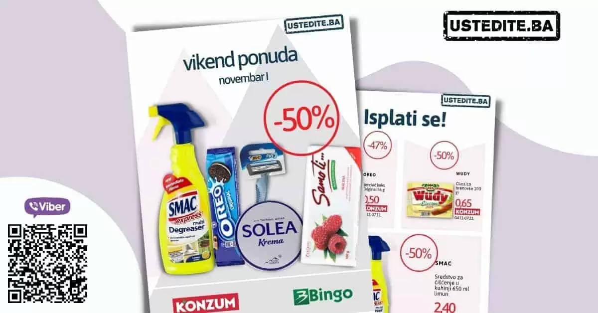 Popusti do 50%! Konzum vikend akcija 04-07.11.2021. godine! Gdje se kriju najbolja sniženja? Ne želiš propustiti nevjerovatno dobra sniženja? Priključi se najvećoj VIBER zajednici SNIŽENJA! Klikni OVDJE! Bingo…