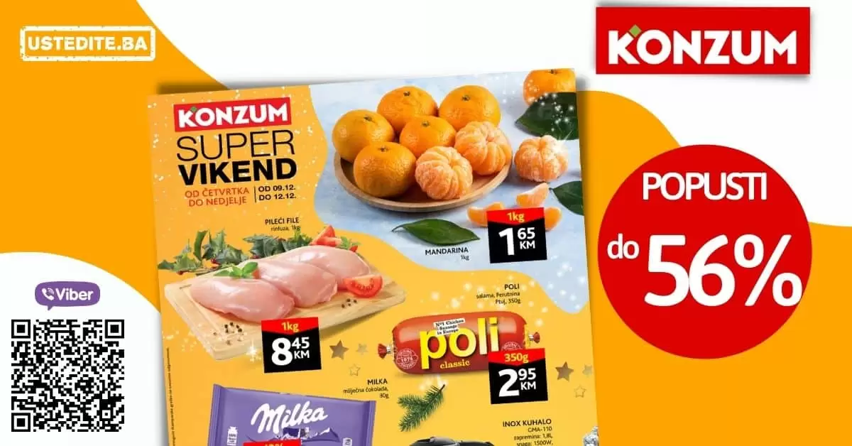 Potražite na Konzum-ovim kasama sjajne ponude! Cijena dana Konzum 17-18.12.2021. godine! Gdje se kriju najbolja sniženja? Ne želiš propustiti nevjerovatno dobra sniženja? Priključi se najvećoj VIBER zajednici SNIŽENJA! …