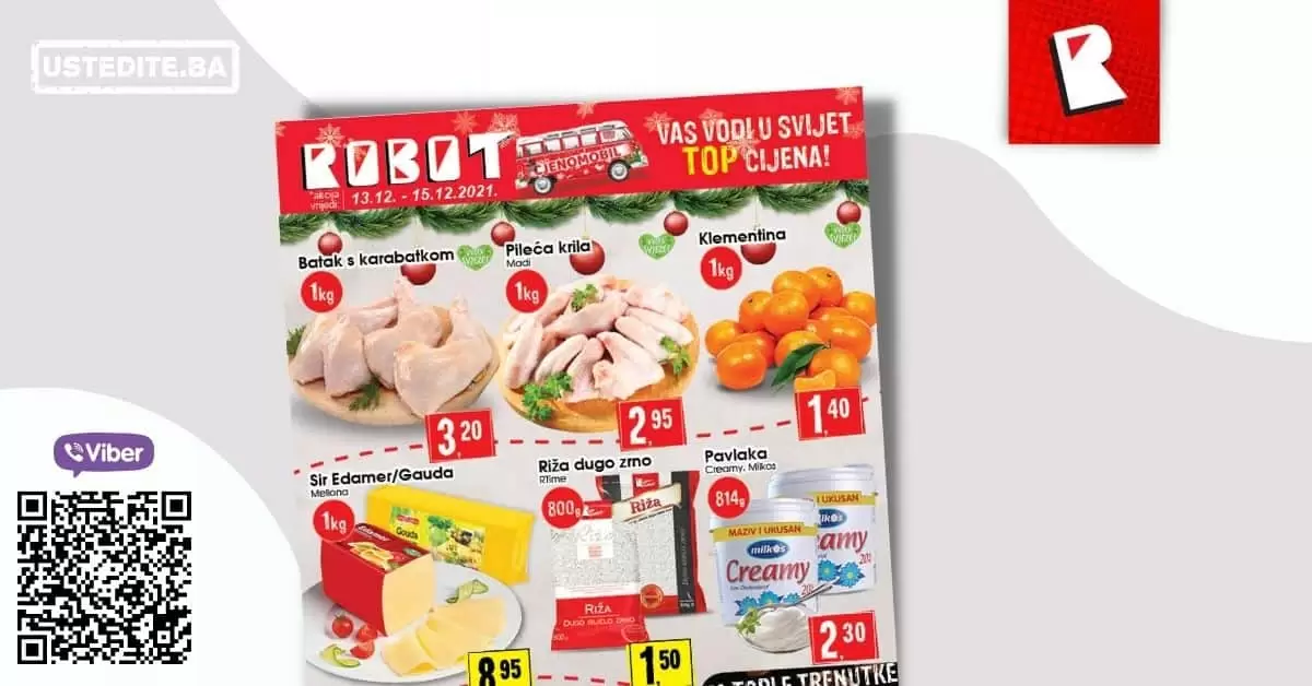 Robotov cjenomobila vodi vas u svijet TOP cijena! Robot kataloška akcija 20-22.12.2021. godine! Gdje se kriju najbolja sniženja? Ne želiš propustiti nevjerovatno dobra sniženja? Priključi se najvećoj VIBER…