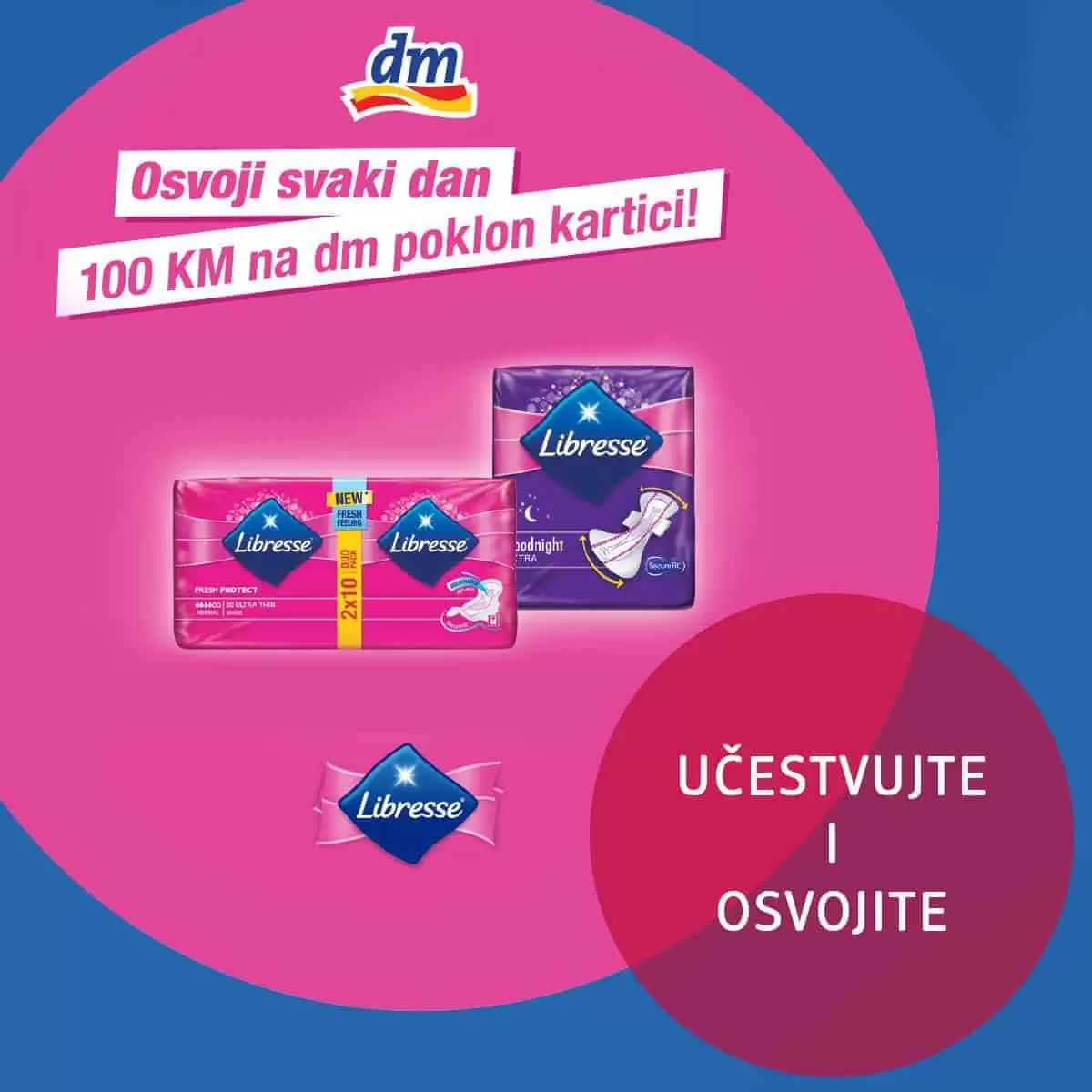 Libresse vas nagrađuje tokom oktobra sa 100 KM na dm poklon kartici svaki dan! ? U periodu od 1.10.2019. do 30.10.2019. učestvujte u Libresse nagradnom takmičenju! Kupite u dm…
