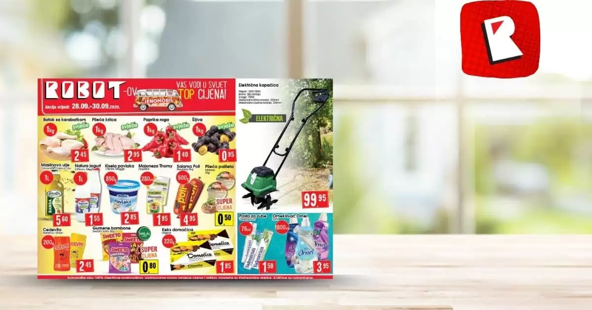 Robotov cjenomobil vodi vas u svijet TOP cijena! Robot Vikend akcija 2-4.10.2020. godine! Uvijek najbolje! Robot Vikend akcija 2-4.10.2020. godine! Gdje se kriju najbolja sniženja? cm akcijski katalog…