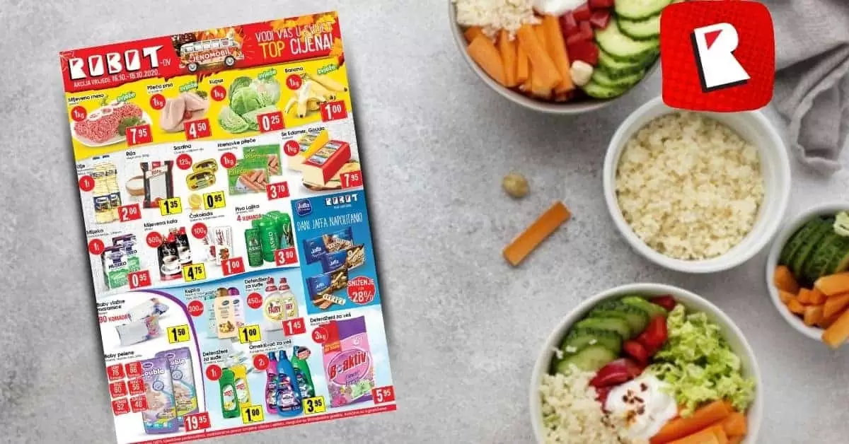 Cjenomobil vas vodi u svijet TOP cijena! Robot akcijski katalog 16-18.10.2020. godine! Izdvojeno iz ponude: Pileća prsa 1 kg samo 4,50 KM Kupus 1 kg 0,25 KM Banana …
