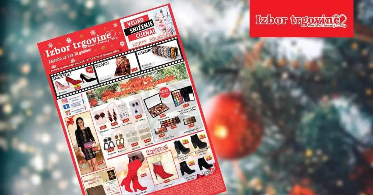 Veeeliko sniženje cijena! Sretni praznici! Uživajte, jer tu je Izbor trgovine akcijski letak! Super cijene čekaju na Vas. Umjetni nokti samo 1,90 KM. Ženski parfem 75 ml samo…