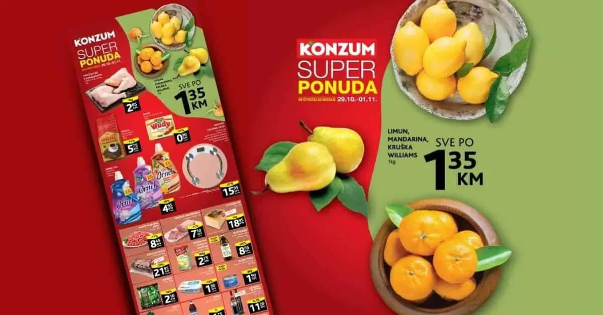 SNIŽENJE do 47%! Konzum SUPER ponuda 29.10-1.11.2020. godine! Limun, mandarina kruška! SVE po 1,35 KM! Znate li da je tjelesna vaga snižena čak 47%! Kupite je za samo…